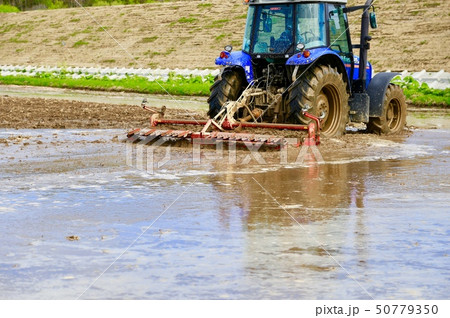 田んぼの代掻き rice paddy
