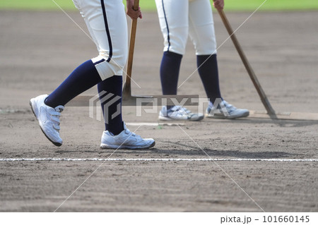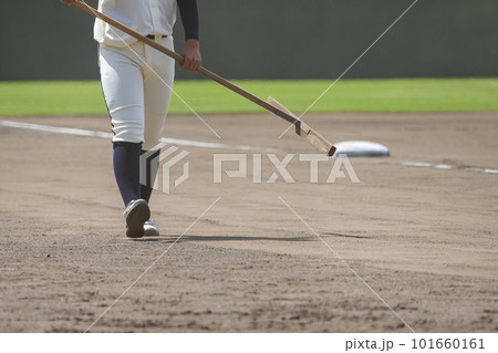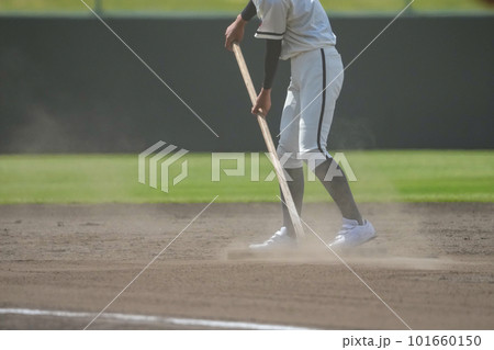 少年野球/試合前にグランド整備をしている選手