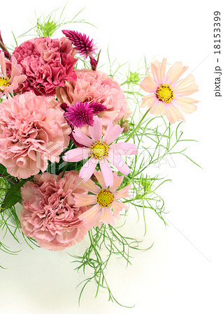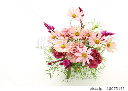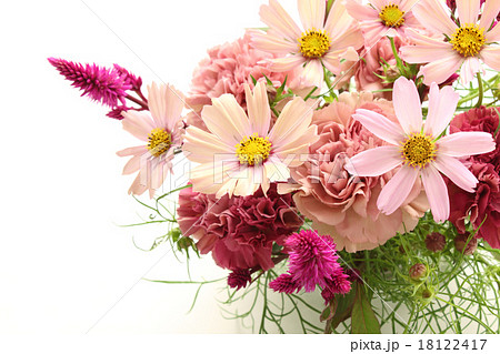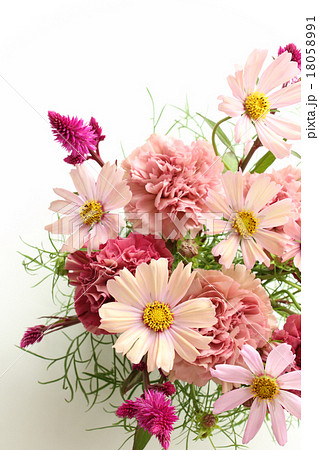 コスモスとカーネーションとノゲイトウのアレンジ(縦 全体 下位置))