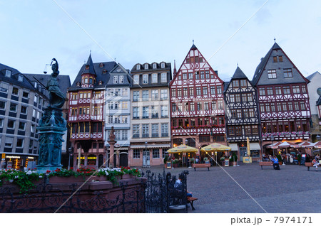 ドイツ 夕暮れのフランクフルト・レーマー広場