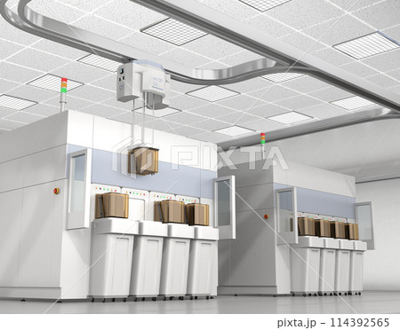 半導体製造工場のOHT搬送装置、エッチング、洗浄装置のイメージ