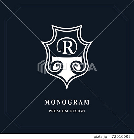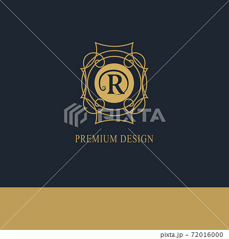 Monogram design template. Elegant gold logo sing R