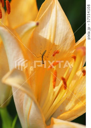 カマキリの幼虫とロイヤルトリニティー・ユリの花