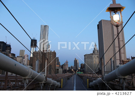 早朝のブルックリンブリッジからロウアーマンハッタン