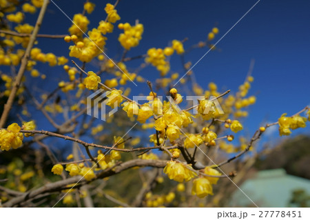 花 ロウバイ 植物 蝋梅 青空 良い香り 黄色