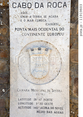 ポルトガル ロカ岬の灯台のポスト ユーラシア大陸の西端 5月