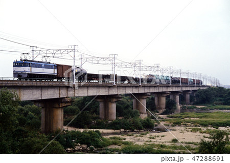 武蔵野線_江戸川を渡るEF65-1054号機牽引の貨物列車_2009/9/19撮影