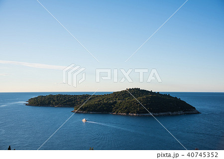 クロアチア アドリア海に囲まれたドゥブロヴニクの旧市街とロクルム島
