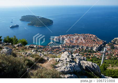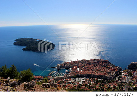 クロアチア スルジ山から見下ろしたドゥブロヴニクの旧市街とロクルム島