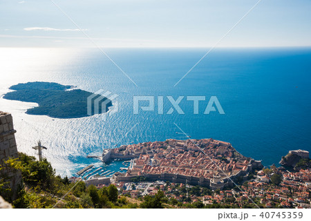 クロアチア ドゥブロヴニクの旧市街とロクルム島とアドリア海