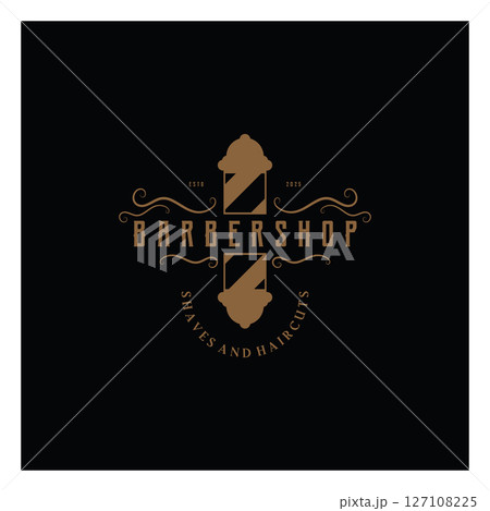 Barbershop logo vintage, retro, haircut, shaving, with scissors, shaving pole, comb, razor. for business, emblems, labels, barber shops, badges.