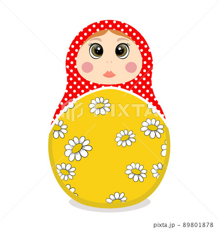 Russian Matryoshka. Traditional Russian folklore dolls with big eyes and lips. Babushka doll with hohloma, traditional painted floral pattern. Hand drawn vector illustration