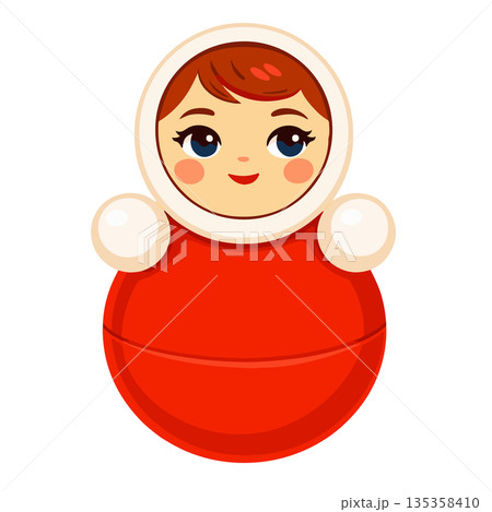 Cute roly poly doll vector illustration in traditional Russian folk style. Bright red toy with friendly face, flat shapes and clean design for children graphics, cultural projects, education