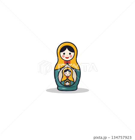 Cartoon flat style drawing of stylized cute matryoshka Russian nesting dolls logo, icon, symbol. Souvenir from Russia. Traditional Russian matryoshka dolls souvenir. Graphic design vector illustration