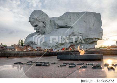 Belarus, Brest, August 2023: Memorial monument to the hero fortress.. Brest Fortress. Monument to the defenders of the fortress and the Eternal Flame