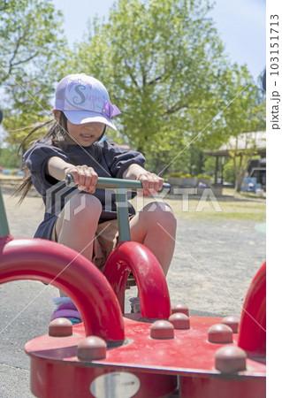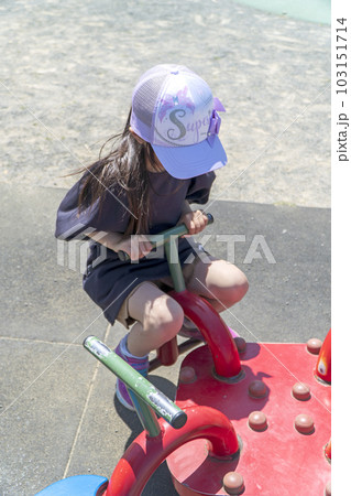 ロッキング遊具で遊ぶ女の子 公園の遊具
