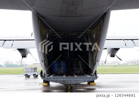 貨物扉を開けたC130Jスーパーハーキュリーズ