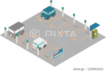 アイソメトリックなフラップレスの駐車場のイメージ素材