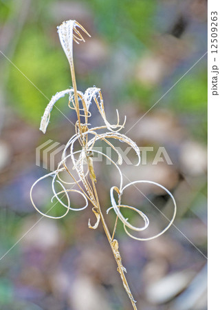 Dry flower of Fireweed (Chamerion angustifolium). Macro photo of fluff with seeds
