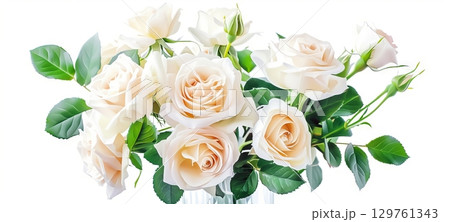 Elegant Bouquet of White Roses with Lush Green Leaves - Concept of Natural Beauty, Floral Arrangements, Romantic Atmosphere, and Wedding Decoration
