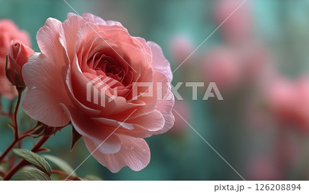 Beautiful Pink Rose Blooming in a Soft Focus Background During Springtime