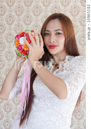 young beautiful woman in a romantic dress with a r