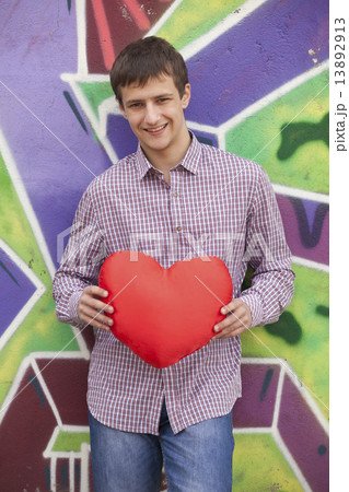 Romantic teen near graffiti wall.