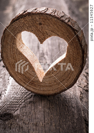 Light heart on rustic wooden background