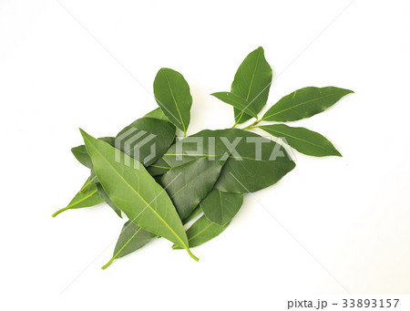 乾燥前の生の月桂樹(ローレル)の葉のアップ