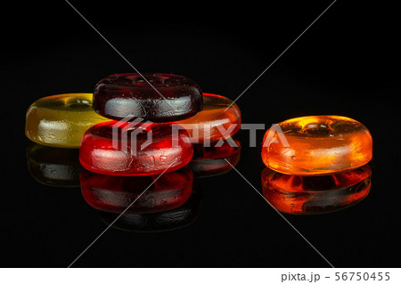 Colourful hard candy isolated on black glass