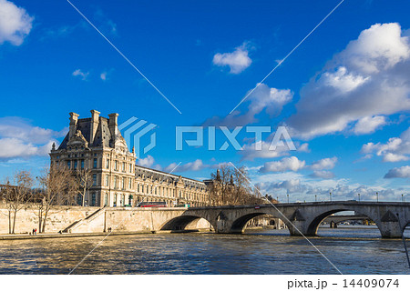パリ セーヌ川から見るルーヴル美術館とロワイヤル橋