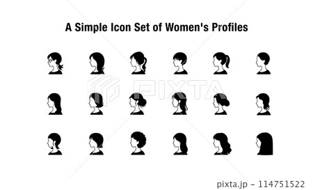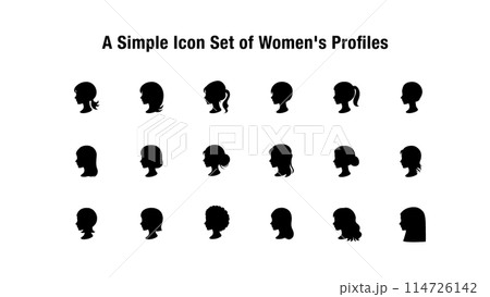 シンプルな女性の横顔のアイコンセット