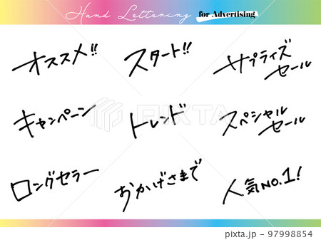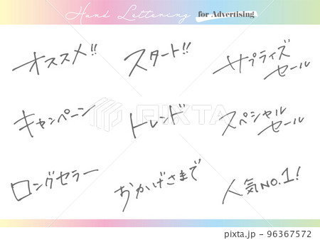 手書き文字素材。日本語の広告用セット。