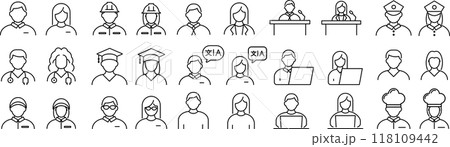 ベクターでモノクロの専門職に関する線画アイコンセット