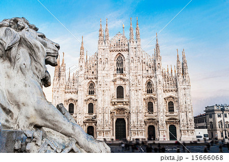 イタリア ミラノのドゥオーモ 大聖堂とライオン像