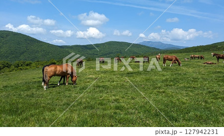 遠野・荒川高原で草を食む馬たち