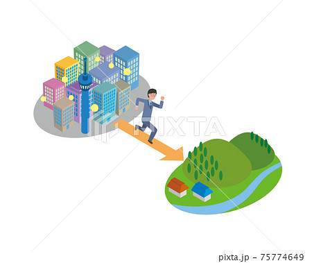 IターンUターンJターンで就職する男性のイメージイラストセット