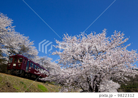 わたらせ渓谷鉄道・大間々の桜並木を行くローカル列車