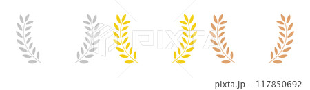 オリーブやローリエの葉のシンプルなリースのフレーム - 3色セットの月桂樹の飾り罫