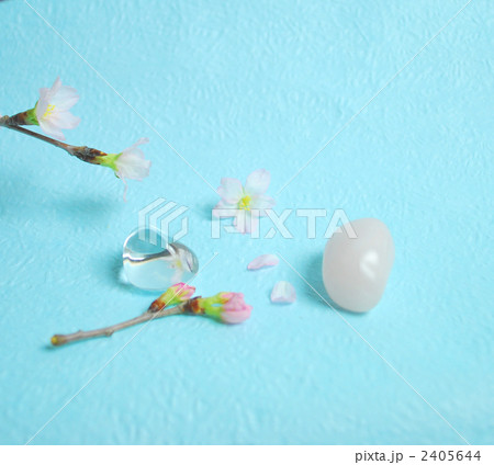 早咲きの啓翁桜とクリスタル、ローズクオーツアメジストのパワーストーン