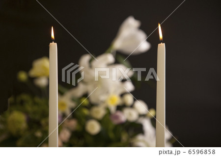 火の点いた蝋燭 燃えるろうそく 仏壇用のロウソク