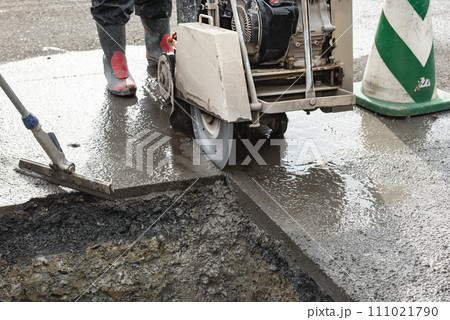 道路 工事現場 コンクリートカッター