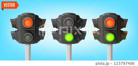3d Pedestrian Traffic Light Sequence Red and Green Lights Cartoon Design Style Symbol of Rules. Vector illustration