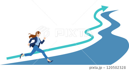 目標達成へのロードマップのイラスト(ビジネスウーマン)
