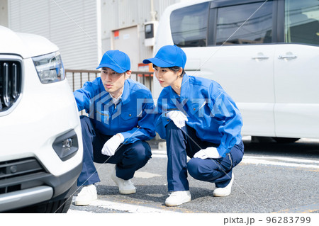 自動車を点検する作業員 自動車整備 ロードサービス