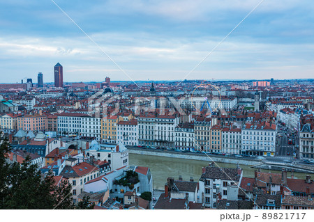 フランス リヨンのフルヴィエールの丘から望む市街地の風景
