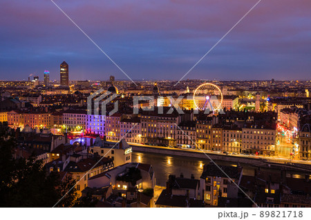 フランス リヨンのフルヴィエールの丘から望む市街地の夜景