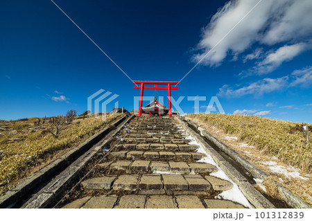 冬の箱根駒ヶ岳山頂の箱根神社元宮