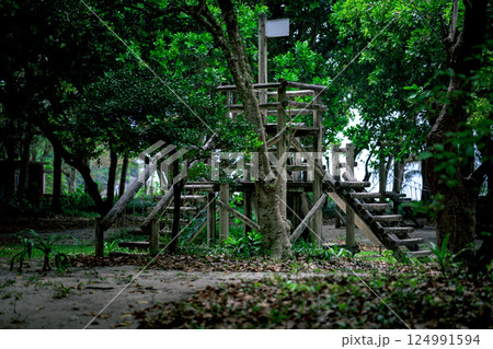 イラスト素材 ジャングルジム すべり台 遊具 木製 ベクター