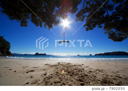 Rope swing at beach, Hahei, Waikato Region, New Zealand